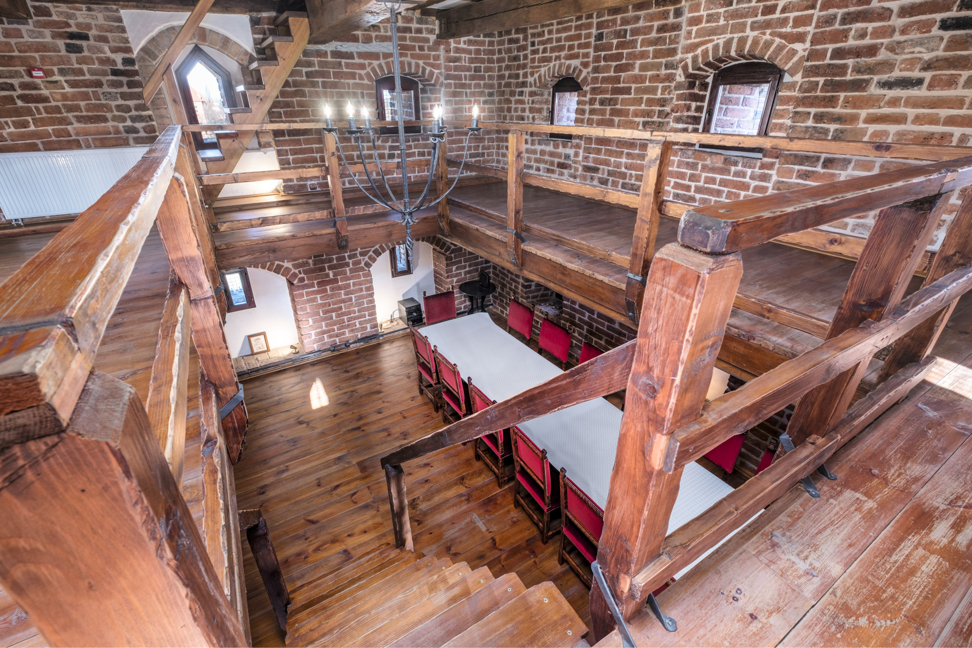 ok. 165 cm w parterze ,potęguje wrażenie które wywiera ten niepowtarzalny budynek .