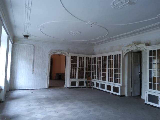 Dalej możemy przejść do biblioteki . W bibliotece na suficie i ścianach jest cenna sztukateria o motywach roślinnych i geometrycznych .Następnie przez salon salon ogrodowy przechodzimy do kolejnych komnat i pomieszczeń .
