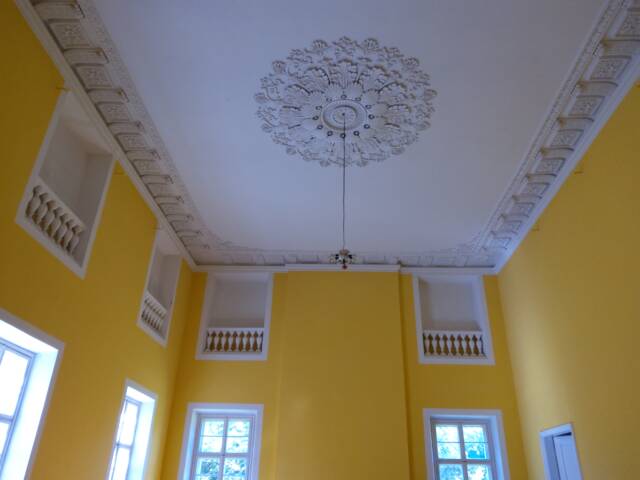 -salę balową wysoką na około 7 metrów ,ze wspaniałymi sztukateriami na suficie